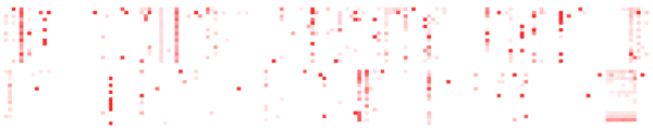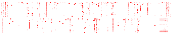 The rectangle represents the amount of data that a single server contributes. Each server's data in this image is actually placed in a horizontal line. One such line is darker than the others, in the middle top. The darkness was caused by high multi-digit values in many of the mpstat(1) columns, replacing whitespace with numbers (this prompted me to investigate further on the server; the issue turned out to be a misconfigured sendmail calling 3000 exec()s per second, which caused high values for the minf, xcal, migr, smtx and sysctl columns).